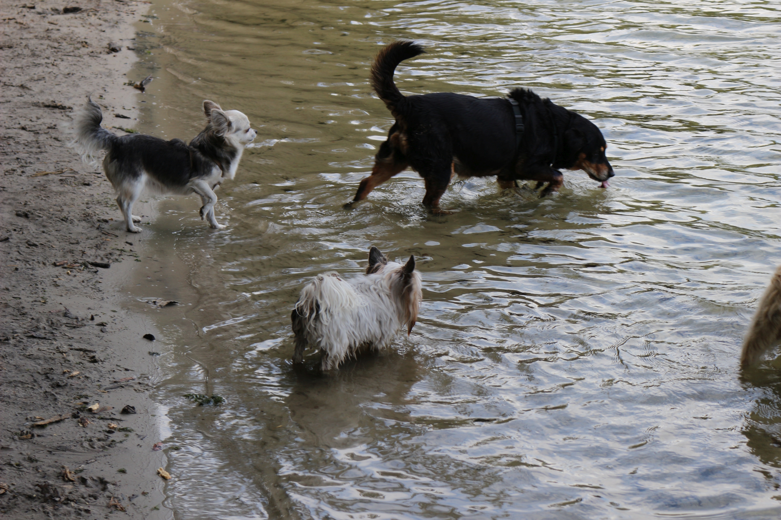 Frauchen meine Pfoten werden naß... komm raus aus dem Wasser